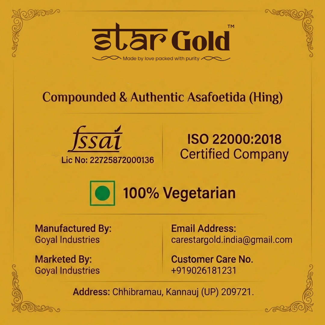 Agar aap apne khaane me asli Indian taste aur strong aroma chahte hain, to Star Gold Hing ek perfect choice hai. Quality aur taste ka aisa combination jo har ghar ke kitchen ke liye ideal hai.