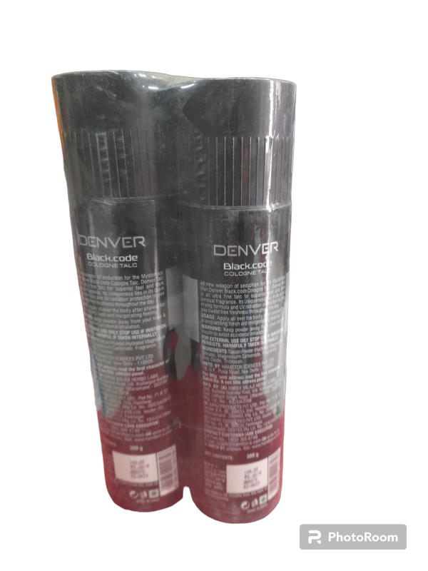 DENVER Black Code Talcum Powder 300GM Each - (Pack of 2) | Scented Talc for Men
