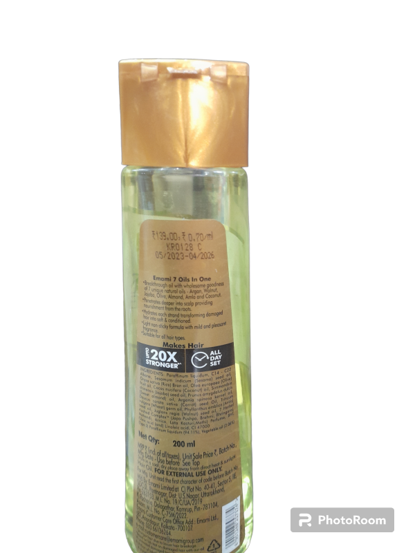 Emami 7 Oils In One Non Sticky & Non Greasy Hair Oil, 20 Times Stronger Hair, Nourishes Scalp