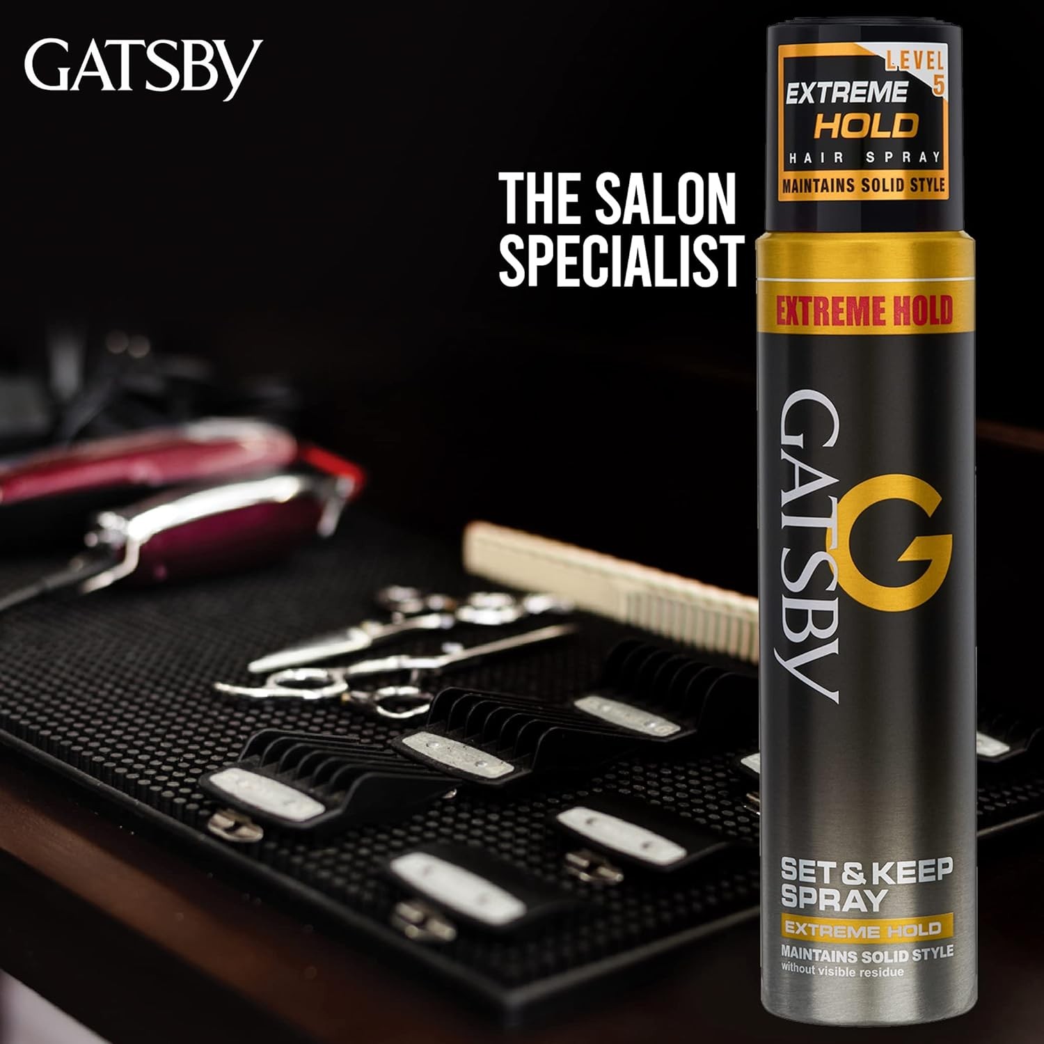 • Gatsby set and keep hair spray extreme hold 250ml- ultimate setting power for a solid style