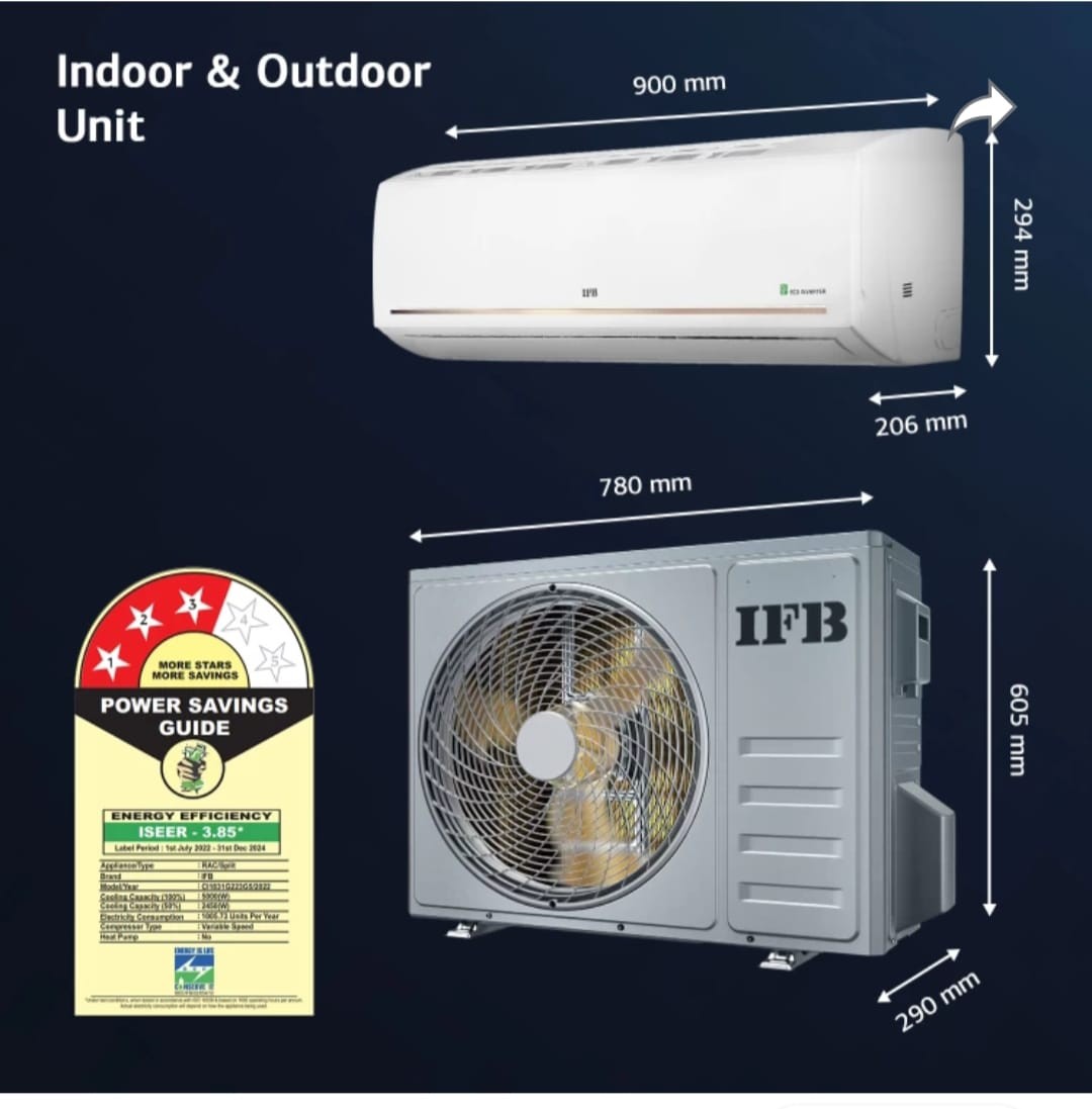 IFB FastCool Convertible Cooling, 1.5 Ton 3 Star Split Inverter Smart Ready, 7 Stage Air Treatment AC - White ( Copper Condenser)