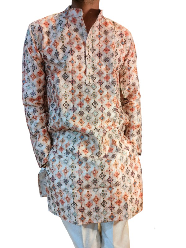 Men's Multicolored Cotton Linen Digital Print Kurta & Churidaar Pyjama || Available in All Size || Medium, Large, XL, XXL