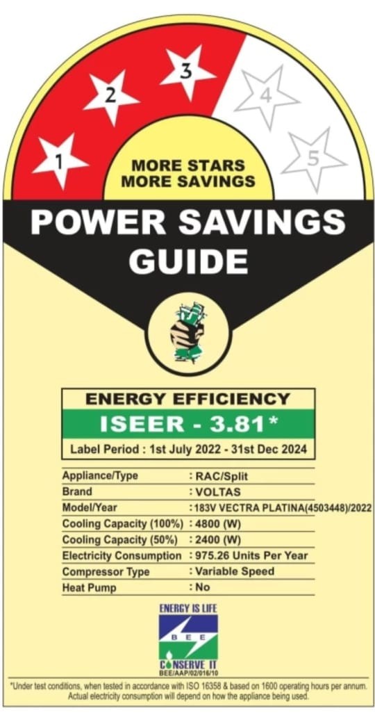 Voltas 2023 Model 1.5 Ton 3 Star Split Inverter AC - White (183V Vertis Emerald) Copper Condenser) 10 yrs compressor warranty